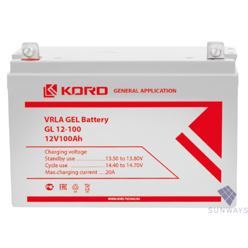 Аккумуляторные батареи KORD серии GEL (GL) также являются необслуживаемыми с системой рекомбинации газов (VRLA), герметизированными, выполненными по технологии AGM+GEL. Низкий уровень саморазряда <3% в месяц позволяет хранить аккумулятор без подзаряда более 6 месяцев при температуре не выше 20 С. Основные сферы применения: Источники бесперебойного питания, системы накопителей энергии, солнечной и ветрогенерации, автономные системы энергоснабжения. Срок службы аккумуляторов данной серии составляет 12 лет (при работе в буферном режиме).